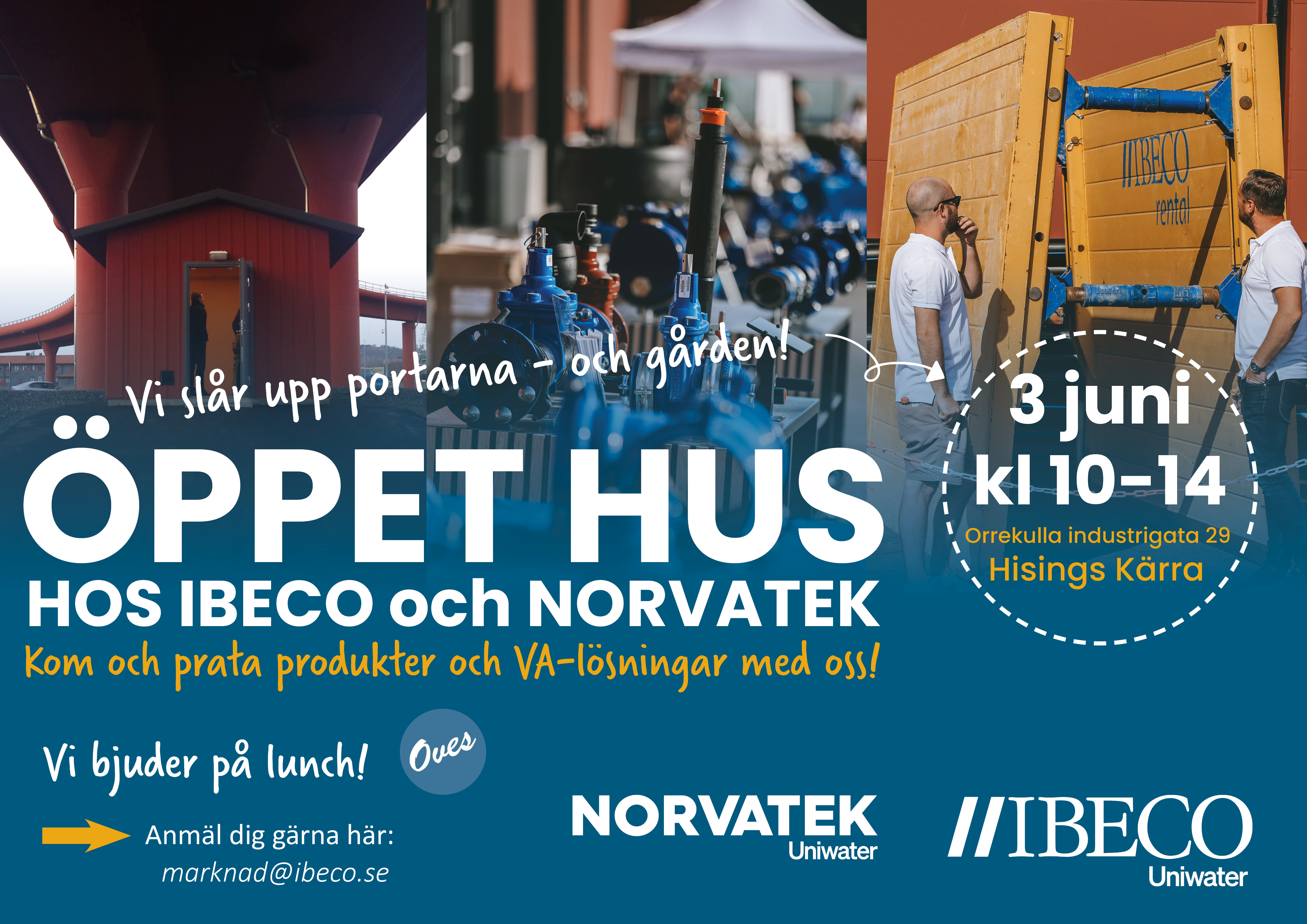 I år tar vi Öppet Hus till en ny nivå. IBECO och Norvatek i Göteborg håller öppet hus tillsammans – och för första gången öppnar vi gården gemensamt så du kan se IBECO produkter, IBECO rental samt pumpstationer från Norvatek i verklig miljö. Det blir helt enkelt större än förut.