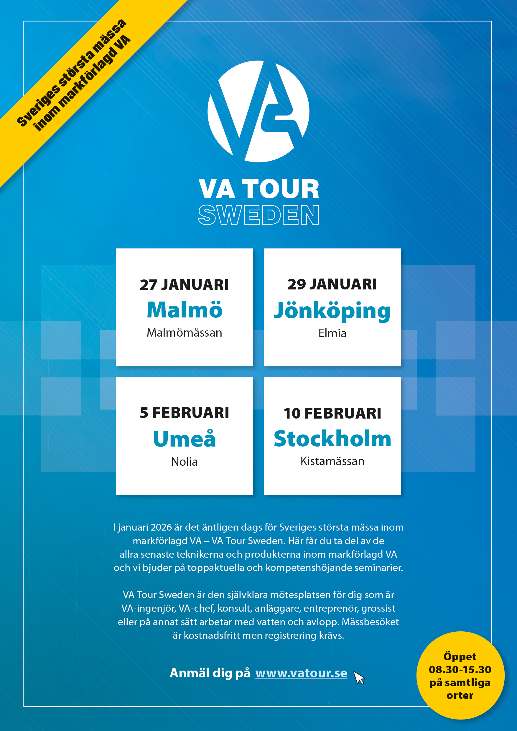 Kom förbi, träffa din säljare, snacka VA-produkter, inspireras och nätverka med branschkollegor.