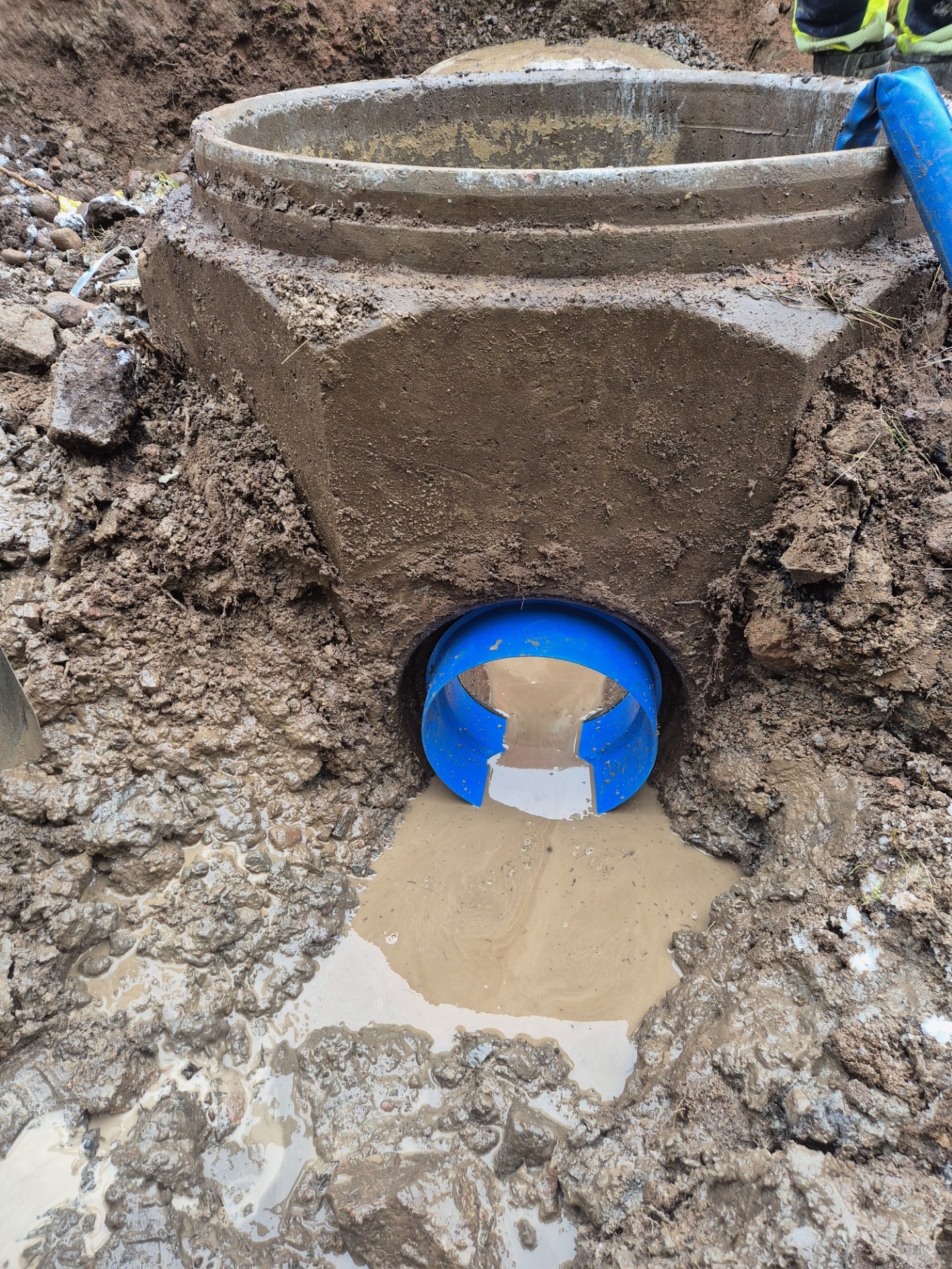 Bilderna visar hur IA-adaptern kan användas för att ansluta nya plaströr till befintlig eller ny betongbrunn avsedd för betongrör.