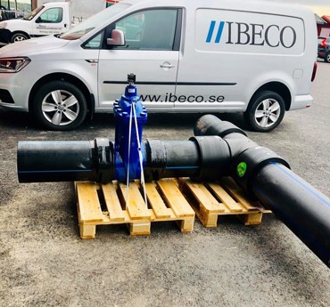 Fucoli-Somepal slussventil PE-ändar 315mm. PE T-rör DN315. Fastsvetsat och klart.