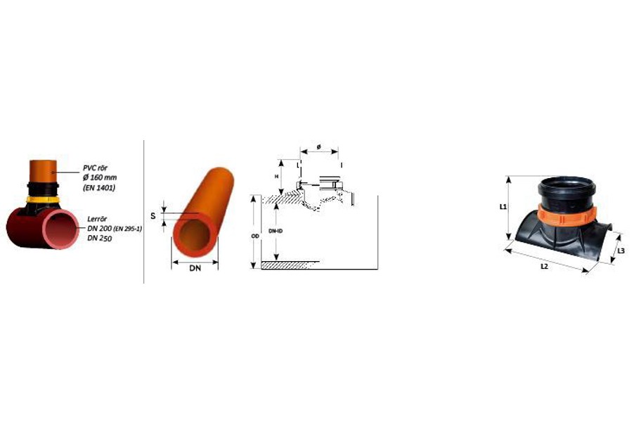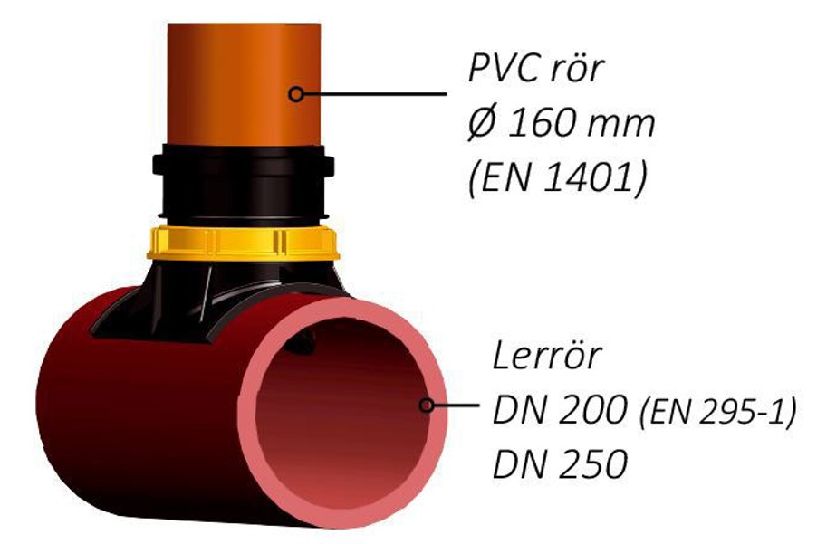 Sadelgrenrör för anslutning till betong och lerrör.