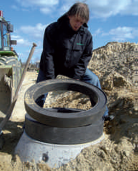 5. Observera, brunnskammen får inte vila på falskanten. Använd här en regleringsring, för utjämning av trycket. Detta gäller även då gamla modellen läggs ovanpå den nya typen av förhöjningsring med fals.