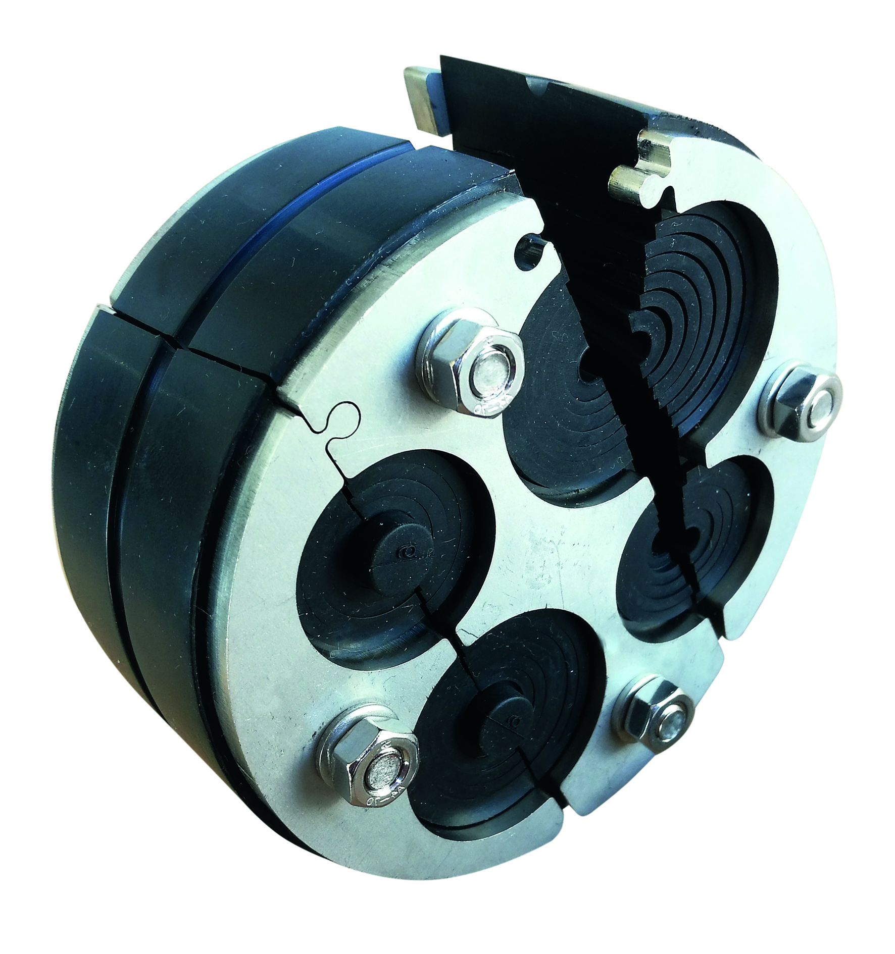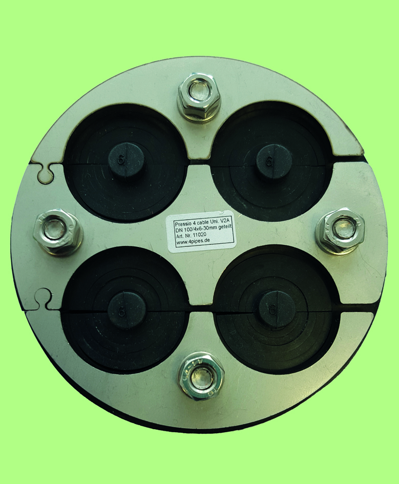 Tätningsområdet för de fyra uttagen för kablar eller rör är flexibel för diametrar mellan 6 och 30 mm *. Delade gummilager i varje enskilt utlopp tillåter en flexibel anpassning till kabeldiametern och en eftermontering av tätningen.