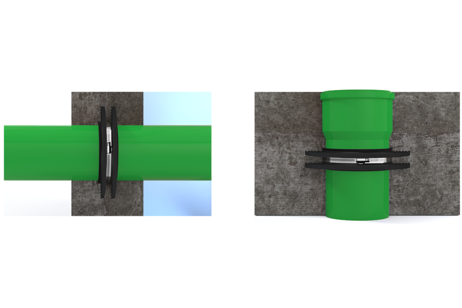 Betong förenas inte kemiskt med röret vid ingjutning och därför måste dessa ingjutningar tätas. IBECO radon- & vattentätningar används till att täta runt rör som ingjutes i betong. Dessa tätningar monteras på röret och förhindrar därmed vatten och gas att krypa längs röret.
