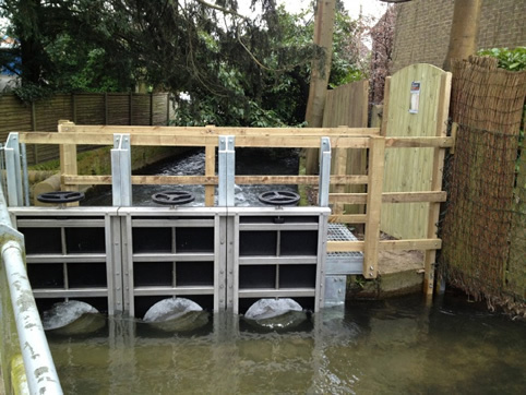 Slussluckorna är permanenta vattenbarriärer som styr vattenflödet från ett område till ett annat och kan justeras manuellt för att uppnå önskat flöde. De används ofta i vattendrag, kraftverk, reningsverk, vid dränering och som översvämningsskydd.
