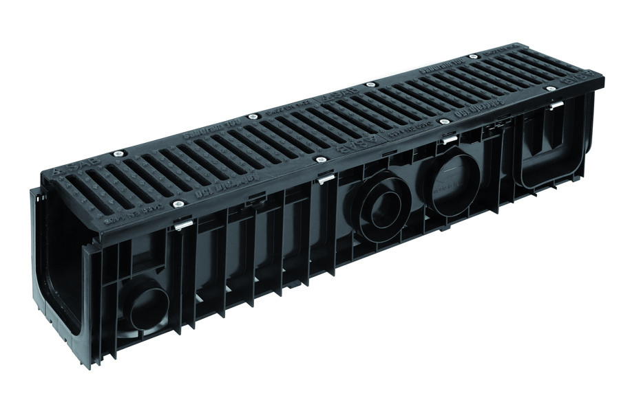 Ränna i PP med PP-kant galler galv stål, stålklämmor. Belastningsklass C250
