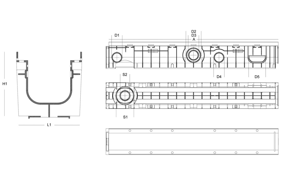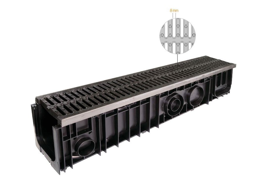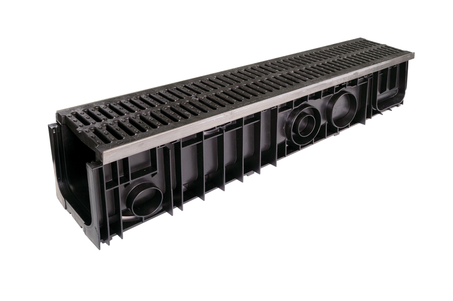 Ränna i PP med stålkant, galler i PAGF. Belastningsklass C250
