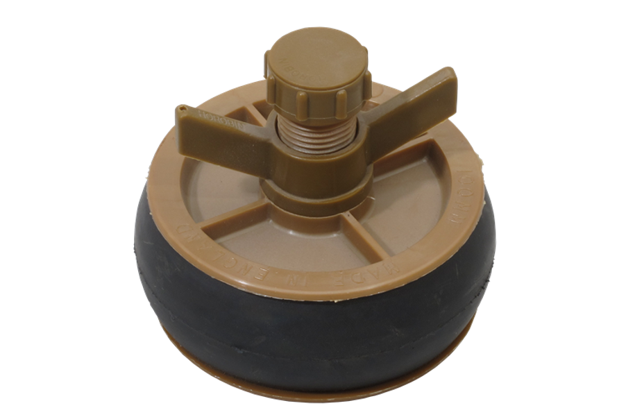 Mekanisk rörpropp tillverkad i nylon med genomföring/genomlopp.