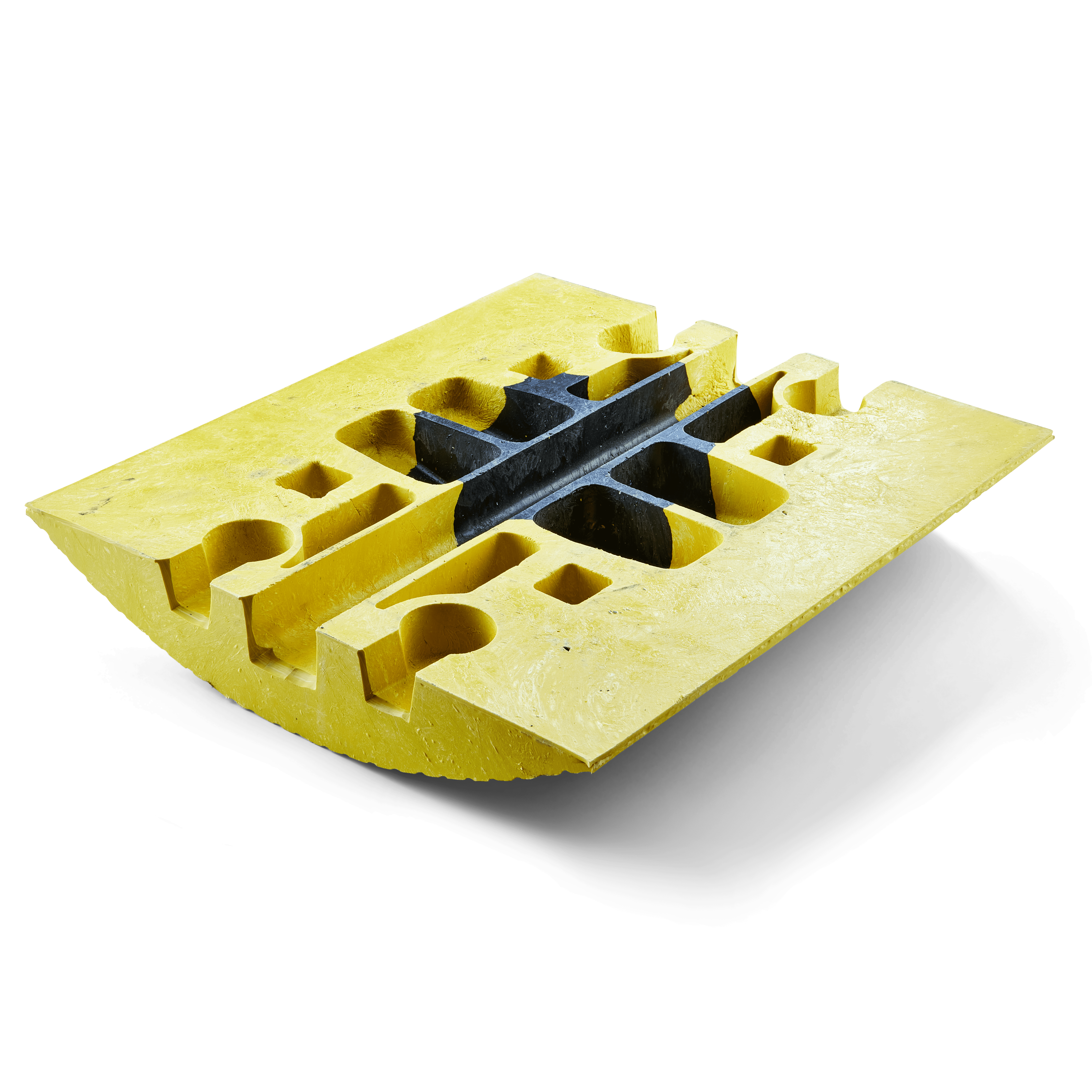 Enduraramp är ett temporärt farthinder tillverkad för att passa över kablar och rör. Klarar fordon upp till 44 ton. Plats för kablar och rör upp till 22mm.