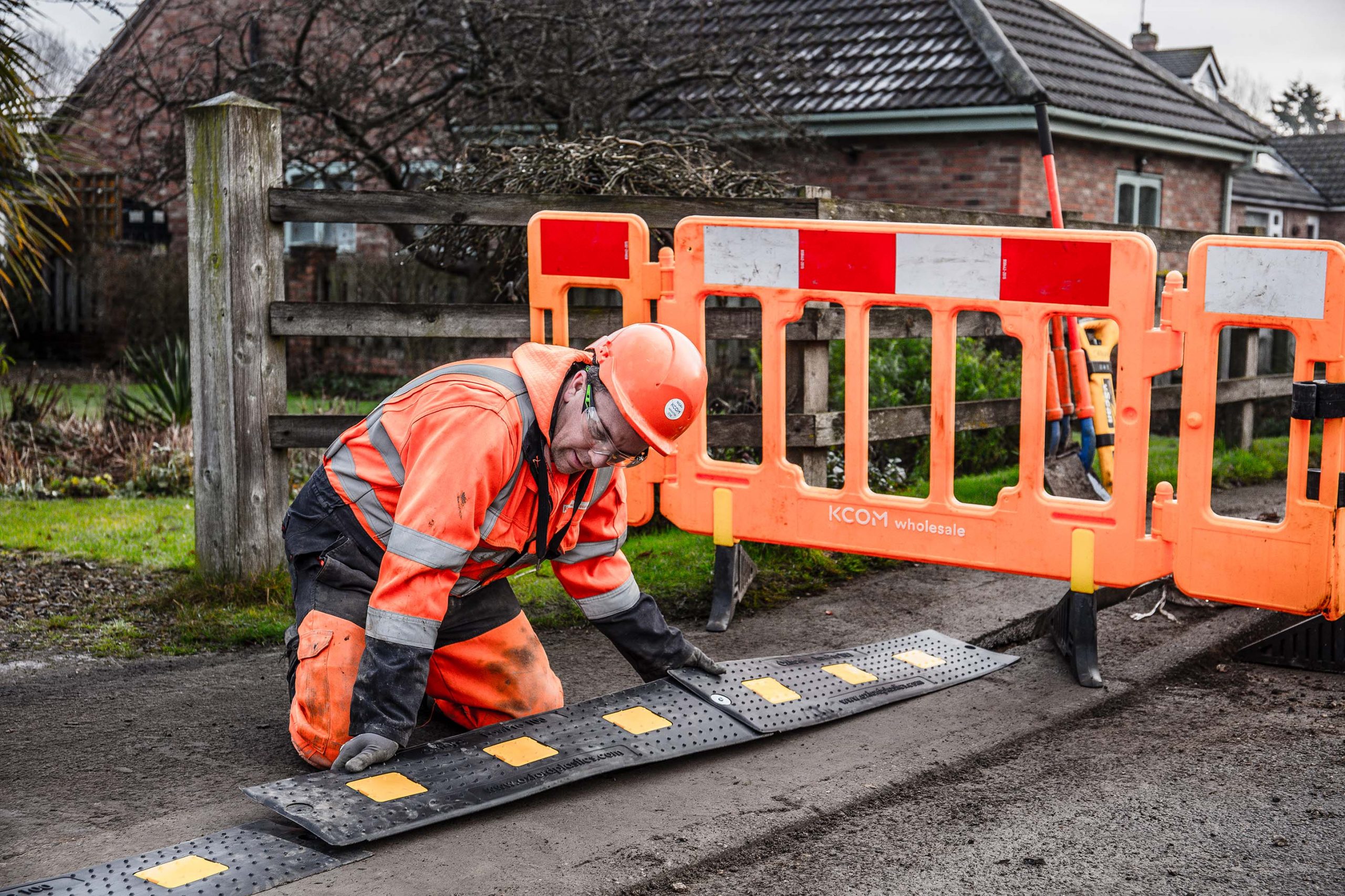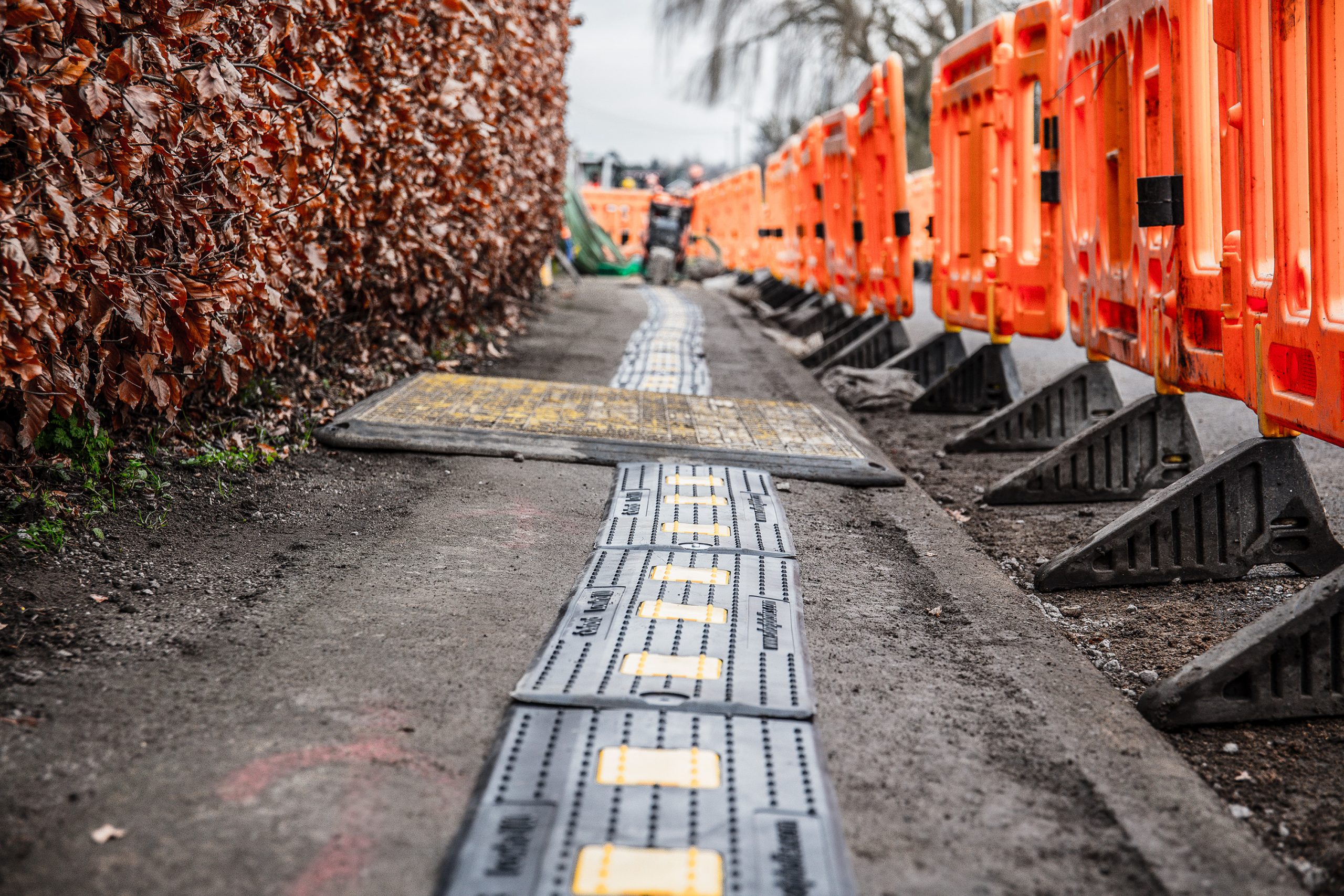 En smal körplåt tillverkad för att passa över kablar och rör. Den passar diken med en bredd på 75–100 mm. Tillverkad av återvunnen plast är den lätt, halksäker och hållbar. Den är enkel att installera och kräver ingen fastsättning, men sektioner kan bultas ihop för extra stabilitet. Med en låg profil är den perfekt för gång- och fordonstrafik, och den kan svänga 30 grader runt hörn, vilket gör den idealisk för användning vid raksträckor och kurvor.