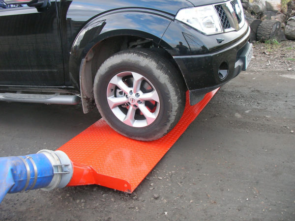 Vägrampen gör det möjligt att pumpa vatten över en väg eller gångväg med minimal störning för trafik. De kan användas som enskilda enheter eller länkas samman i flera enheter med hjälp av 45-graders böjar. Road Ramp är lämplig för fordon i alla storlekar och har belastningstestats upp till 70 ton. Fritt flöde genom hela rampen.