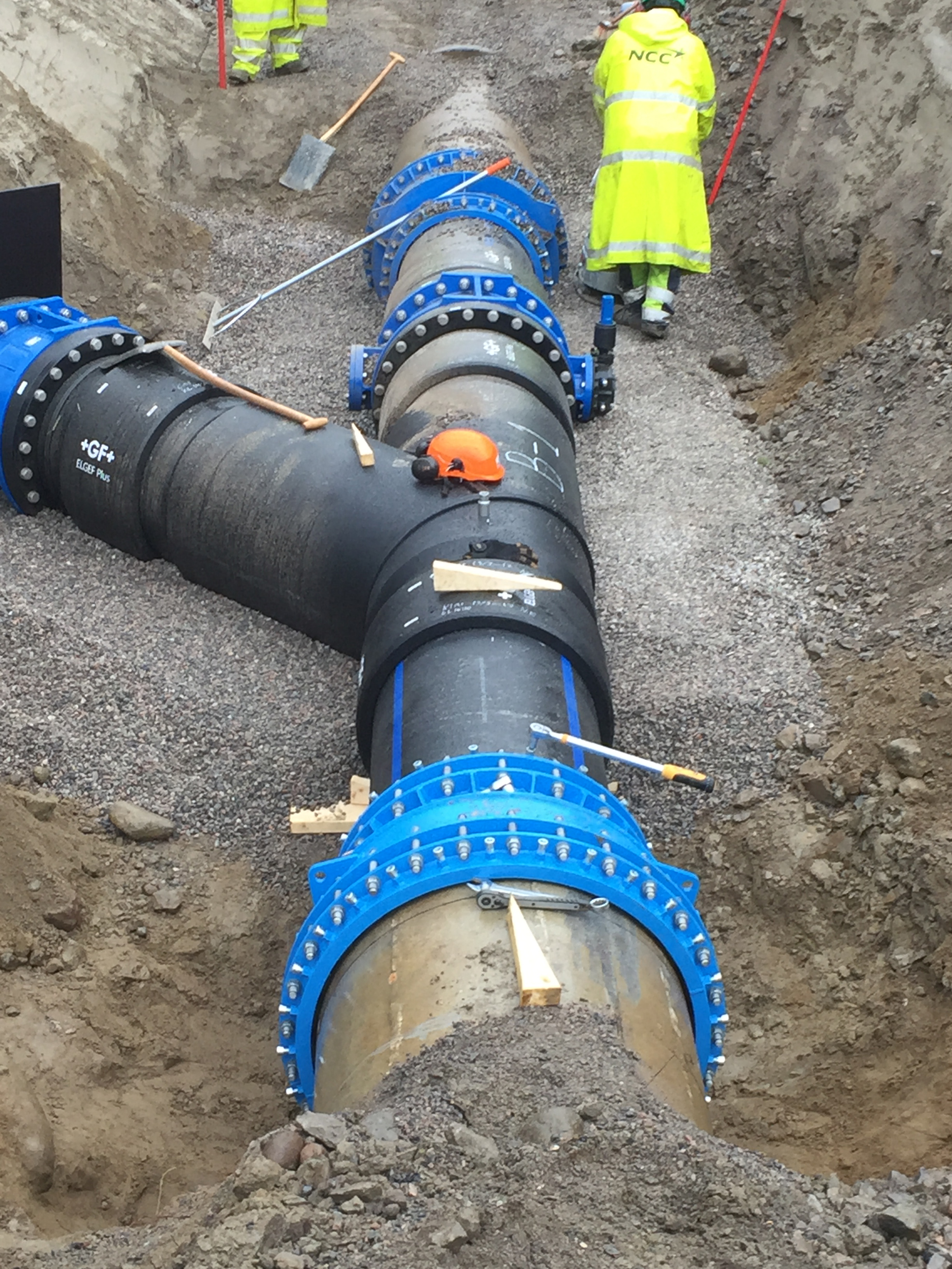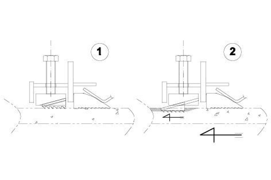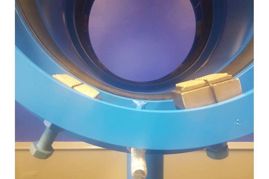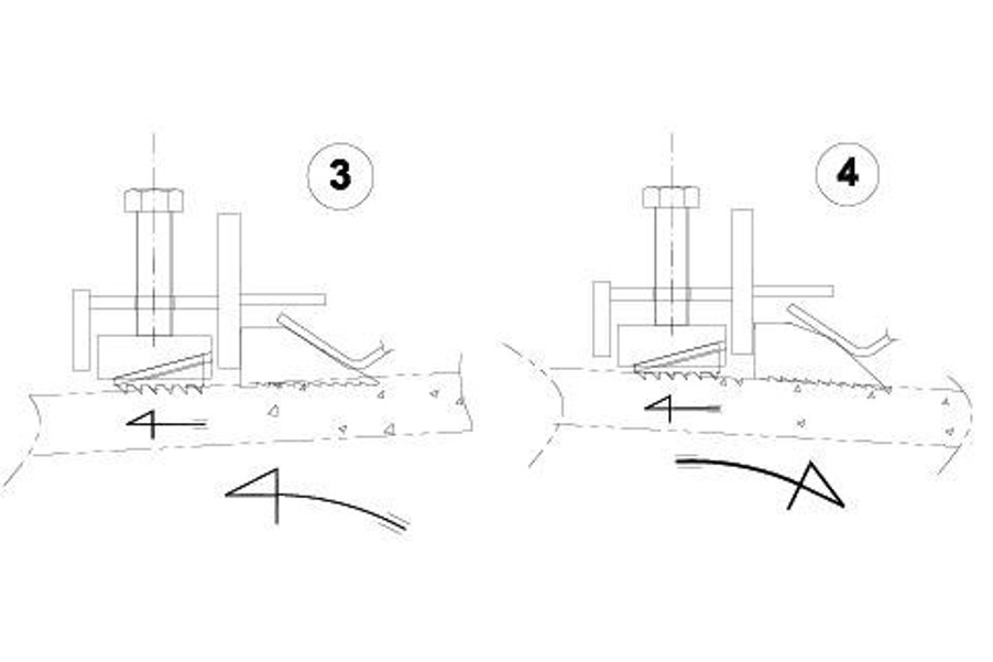Gripblecken justerar sig själva individuellt i alla riktningar beroende av kraft och markrörelser och greppar hårdare kring röret ju mer påfrestningar det utsätts för.