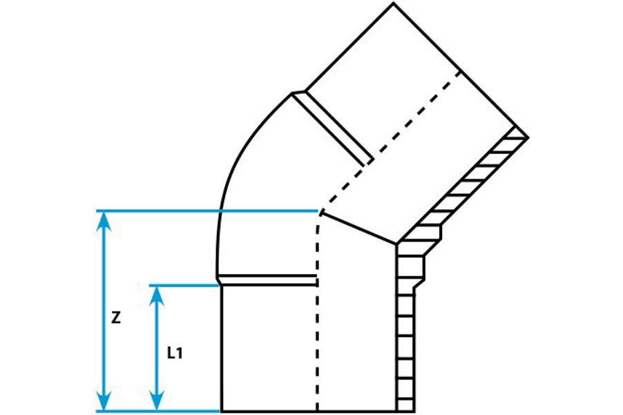 IBECO långa 45° PE vinklar för elsvetsmuff eller stumsvets.