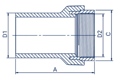 Ibeco långa PE övergångar till invändig gäng för elsvetsmuff eller stumsvets.