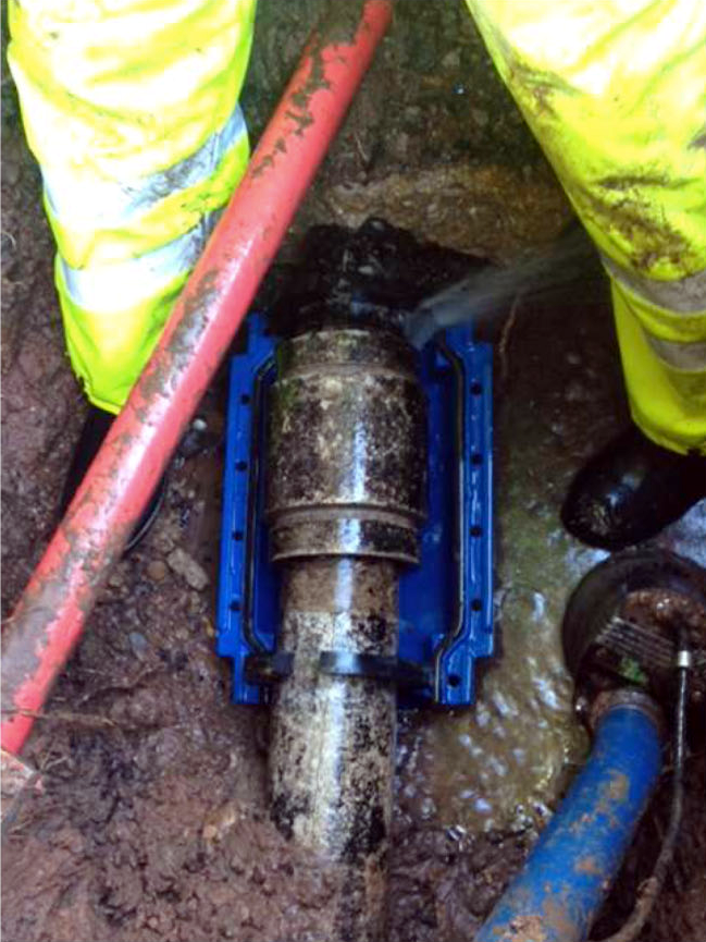 Används med fördel när man ej har möjlighet att stänga av vattentrycket för att reparera. Kopplingen består av två halvor som enkelt monteras samman med bultförband och tätningar.