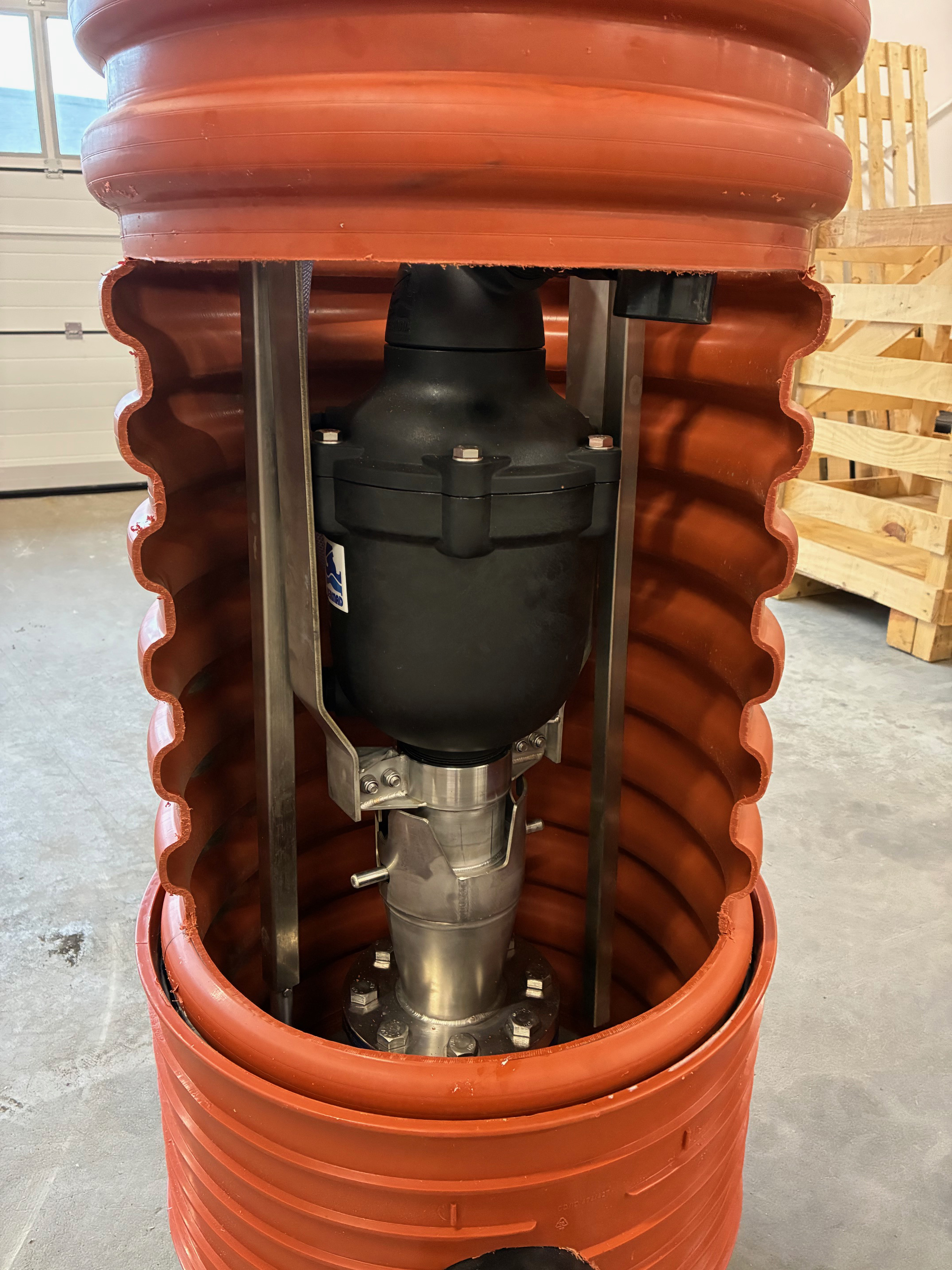 Den levereras dränerad och finns i konfigurationer anpassade för både spillvatten- och dricksvattenapplikationer.