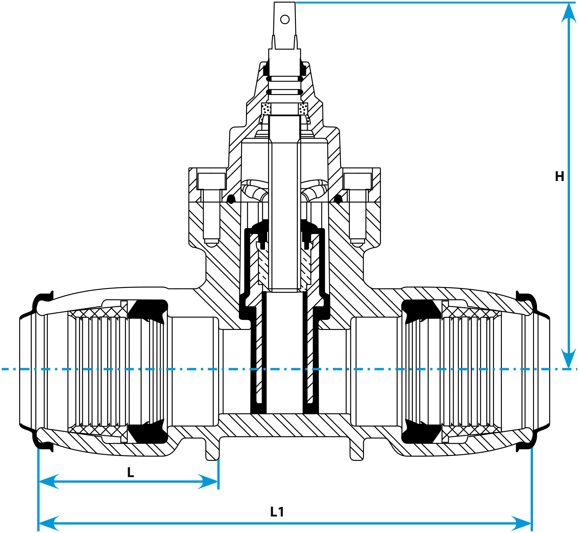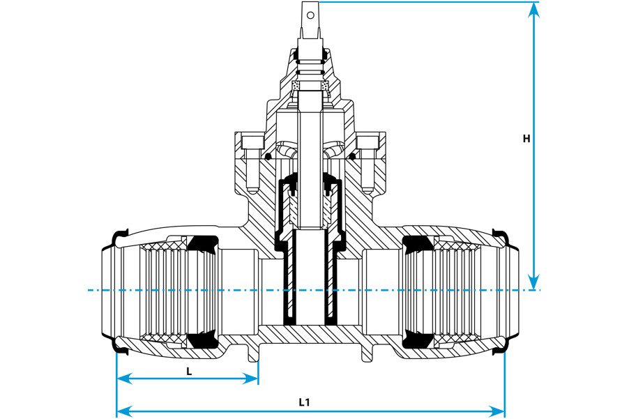 Servisventil PN16. Direktinstick med dubbla läppringstätningar för PE; fritt genomlopp.