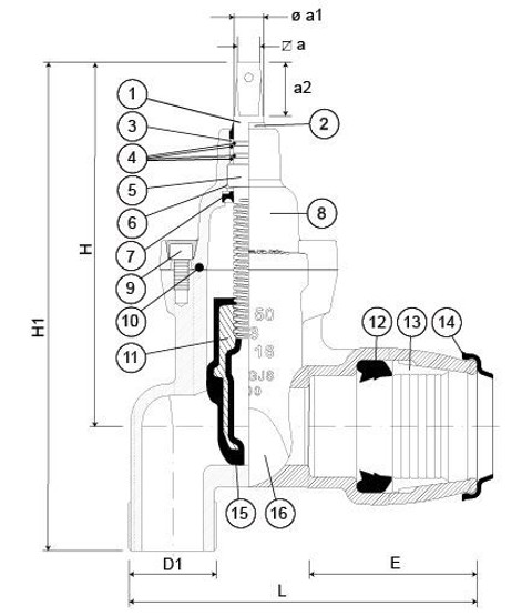 - Fullt vulkaniserad sluss/kägla med fixerad spindelmutter i avzinkningshärdig CW617N mässing (accepterad på UBA lista)