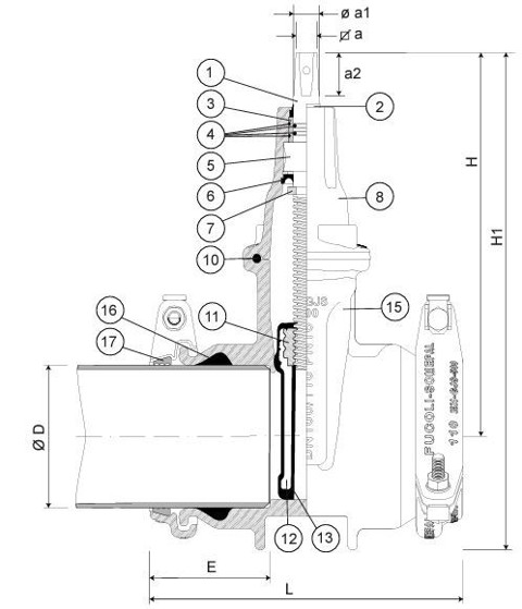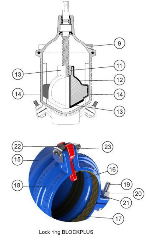 Mjuktätande slussventil med BLOCKPLUS med dragfasta muffar för PE och PVC-rör. Fritt genomlopp.