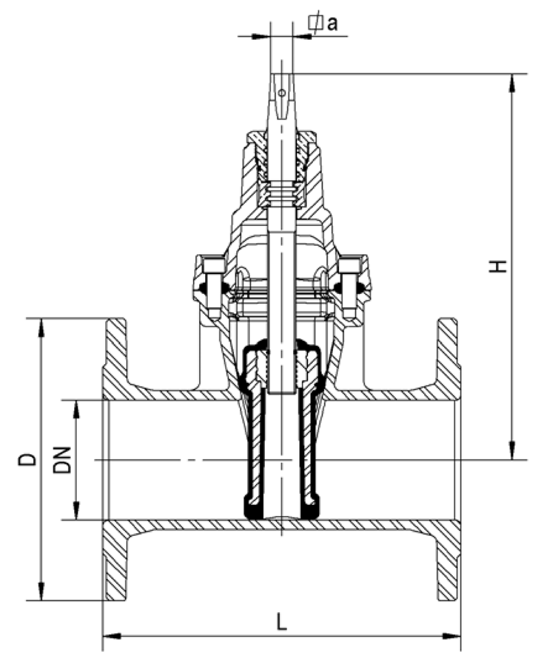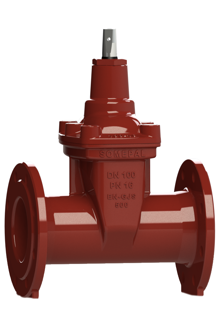 Fucoli-Somepal slussventil. Med fläns; lång bygglängd F5; fritt genomlopp.