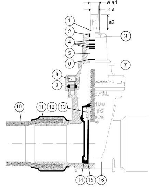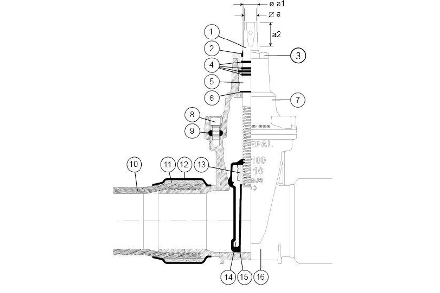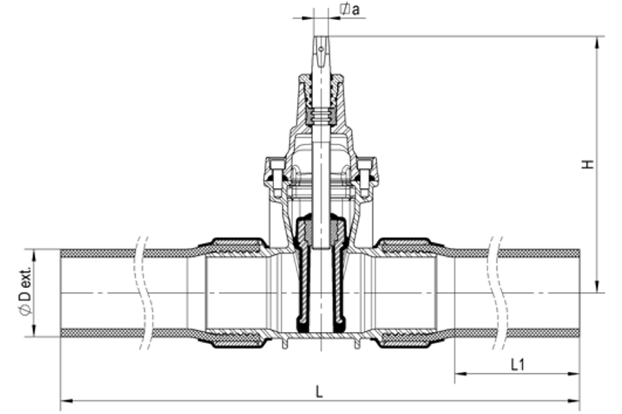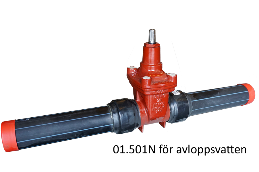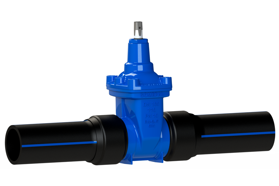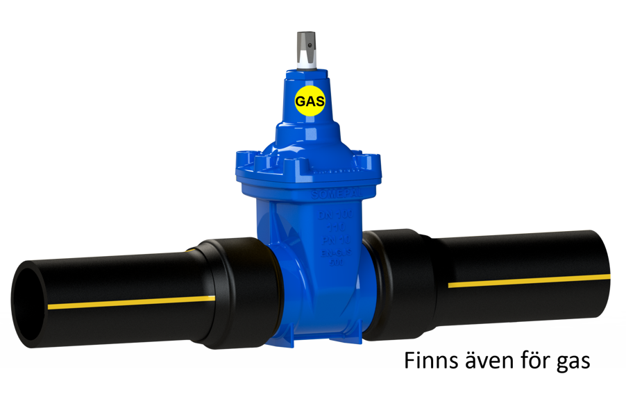 Mjuktätande slussventil för vatten-, avlopp- och gassystem. Med PE-ändar, PE100, PN16, SDR11; fritt genomlopp.